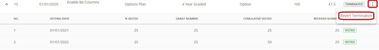 It is possible to revert a grant termination on the platform, if the grant was terminated in error or if an incorrect termination rule was used.