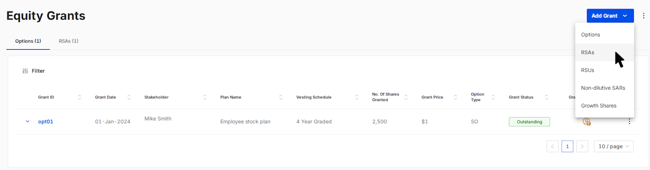 In this new version, any new RSA grants added will be immediately reflected on the cap table irrespective of its vesting schedule status, providing real-time updates and improved accuracy. As this moment, RSAs only support a time based vesting schedule being associated.