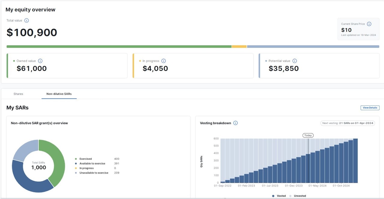 Grants that are in the grant acceptance workflow and pending company or participant acceptance are not included on the dashboard until after you have accepted the grant.