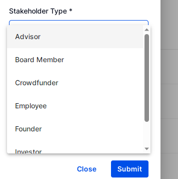 When adding a new stakeholder, you need to select a Stakeholder Category. This dictates the shareholder group they feed into on the company Cap table.